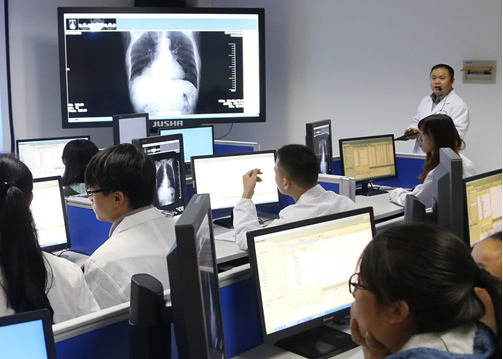 10月31日上午,实践教学竞赛在临床技能中心各实验训练室进行。各参赛教师方案设计周密,教学过程严密有序,评委们客观、公正地从教学态度、教学内容、教学方法及教学效果四个方面进行评分。其中医学影像教研室王中程老师运用影像会诊系统与医院内PACS系统连接,利用丰富的临床教学资源为学生上了一堂生动的影像诊断课,并荣获一等奖;医学检验教研室何巍巍和外科教研室姚传老师获二等奖;内科教研室李宏韬、眼科教研室吴柄东和口腔医学教研室王鑫老师获三等奖。