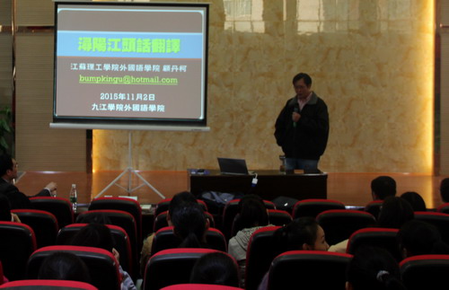 11月2日下午,江苏理工学院顾丹柯先生应邀到香远楼外国语学院学术报告厅作了题为“浔阳江头话翻译”的学术讲座。外语师生近200人参加学术报告会。