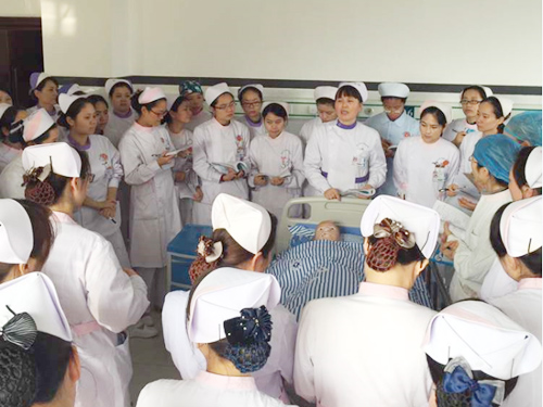 为提高护理人员操作技能水平,迎接省卫计委2015年全省临床实践技能大比武,经考核遴选了32名操作培训师,近日,临床医学院/附属医院在临床技能中心护理技能训练室开展了临床技能大练兵活动。全院护士长及32名操作培训师参加技能培训。