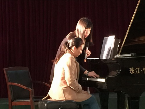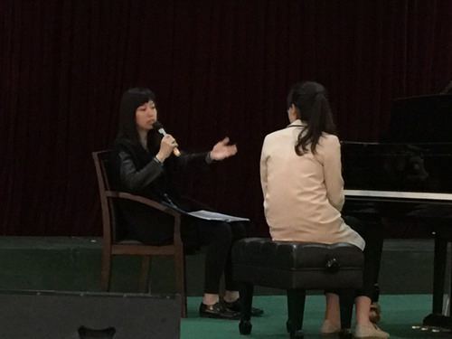 此次大师课分为两个半场举行。前半场为教师研讨交流,后半场为现场教学。在前半场交流中,艺术学院谭筱婷、王祖君、蔡园园等三位青年钢琴教师作了现场演奏,在听取完演奏后,韩卉菁博士分别对三位教师的演奏进行了现场点评,对表演者的演奏给予充分肯定,同时从演奏技巧方面进行了指点。在后半场的现场教学中,艺术学院学生刘梦蕙进行了演奏,韩卉菁博士进行了演奏讲解。