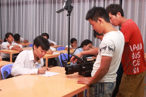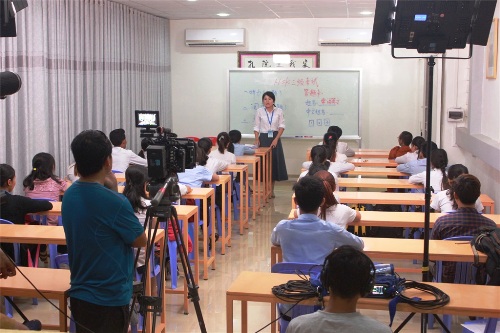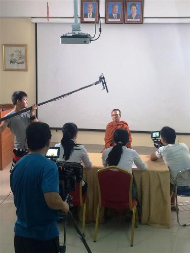 5月12日下午,五洲传播中心“中国-东盟(柬埔寨)留学教育合作交流” 专题片摄制组一行来到柬埔寨王家研究院孔子学院拍摄。拍摄内容包括汉语水平考试(HSK)、孔子学院奖学金面试现场等,孔子学院师生50余人参与了拍摄工作。