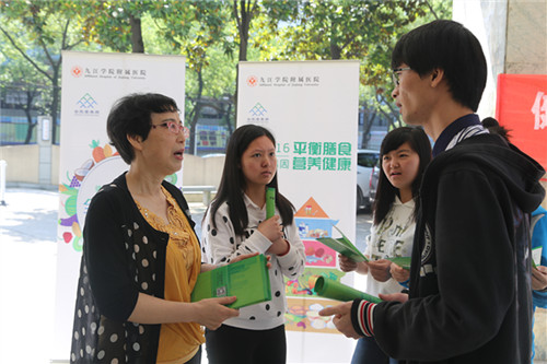 随后,在一教学楼前开展了“我青春·我营养·我健康”的营养健康科普活动,夏小蓉主任医师、夏丽娟营养师免费发放平衡膳食宣传手册,耐心细致地为同学们解读《中国居民膳食指南(2016)》,指导大学生养成良好饮食习惯和健康生活方式。