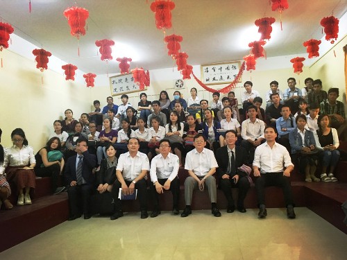 6月9日,贵州师范学院校长李存雄一行6人(文学院院长吴俊、杨荫冲、对外交流合作处梁瑞副处长、教育科学学院郑玉莲副院长、历史与社会学院李忠峪副院长)到访柬埔寨王家研究院孔子学院,柬埔寨王家研究院院长、孔子学院理事长克洛媞达院士(H.E. KHLOT Thyda),孔子学院院长、参议院顾问谢莫尼勒阁下(H.E. CHEA Munyrith),中方院长帅式毅热情接待了到访人员。