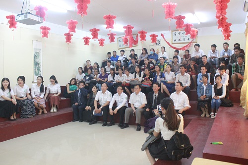 下午五时,谢莫尼勒阁下与帅式毅院长和孔子学院师生进行了一场关于中国传统节日的座谈会。座谈会中,谢莫尼勒院长为柬埔寨学生生动讲述了中国传统节日的传说、意义及各种有趣习俗。并通过中间两国文化习俗的对比,找出了中柬两国的文化共同点,从而使学生对中柬两国的文化有了更深刻的理解。