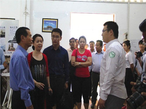 孔子课堂负责人刘振老师率领全体中文教师对各位贵宾的到来表示热烈欢迎。随后,他向大家介绍了孔子学院在暹粒省的发展情况以及孔子学院对吴哥高中学校教学工作的支持情况。皮查南国务秘书和俞小萱副秘书长在听完介绍后,都对孔子学院的工作表示充分肯定,并殷切希望孔子学院以此次参访为契机,进一步加强汉语教学,努力推动中柬文化交流,为中柬兄弟般的友谊再铸辉煌。