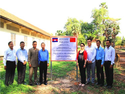 随后,大家一起参加了援建吴哥高中新教学大楼项目揭牌仪式。