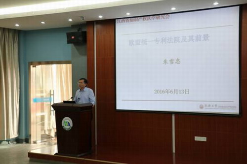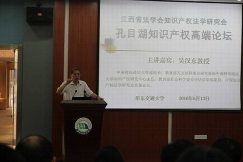 成立大会后,举办了首届孔目湖知识产权高端论坛,由吴汉东教授和朱雪忠教授分别针对“世界变革和中国发展中的知识产权”与“欧盟统一专利法院及其前景”等知识产权热点问题作了重要发言。
