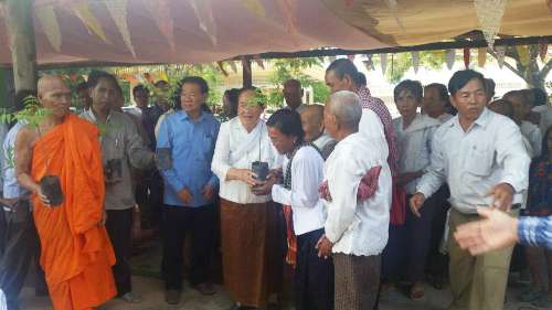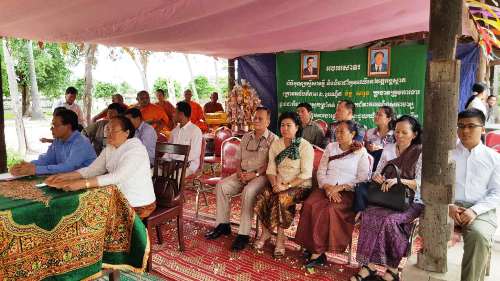 7月10日,柬埔寨王家研究院孔子学院中方院长帅式毅及夫人陪同王家研究院院长、孔子学院理事长克洛媞达院士(H.E. KHLOT Thyda)前往柬埔寨茶胶省佛寺参加活动,并种下“友谊之树”,国务部长吴和顺阁下(H.E. CHAN Sarun,原农业部部长)出席活动。大家共同在佛寺种下芒果树、浇水,并赠送树苗给村民。