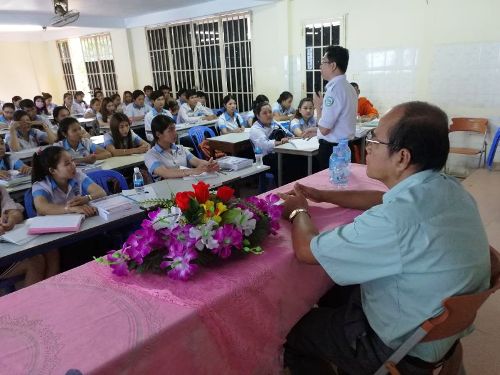 8月13日,柬埔寨王家研究院孔子学院院长谢莫尼勒阁下(H.E. CHEA Munyrith)赶赴磅湛省做“一带一路——人才培养和教育的新丝路”宣讲会,正式启动柬埔寨王家研究院孔子学院磅湛省西部大学(Western University)汉语中心,孔子学院教学点扩展到11省31个。磅湛省西部大学招生办公室主任殷桑波(YIN Sambok)出席宣讲会,200余名磅湛省大、中学生参加了活动。