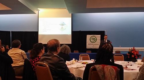 美国当地时间2016年11月10日,由美国萨凡纳州立大学孔子学院主办的“中国与世界经济论坛”在萨凡纳州立大学宴会厅举行。