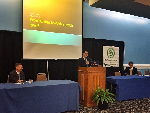 首先由连教授做了题为“从中国到非洲”的讲座,他介绍了中国对非洲的直接投资情况以及在非洲开办孔子学院情况。接着史文生先生从中美贸易关系的角度出发,做了题为“中国正为佐治亚带来发展机会”的讲座,向大家介绍了中国经济的五年计划、“一带一路”计划、电子商务经济状况以及中国近年来与美国佐治亚州的经济合作项目,提出中美双方可利用良好的合作平台,实现互利共赢,共同发展。最后,大卫贝尔先生做了题为“新丝绸之路”的讲座,他分析了目前中国经济增长所面临的挑战和对外直接投资的机遇,并指出“新丝绸之路”是连接中国与世界的良好渠道,有利于实现“中国制造”和“为中国制造”之间的互换与互利。