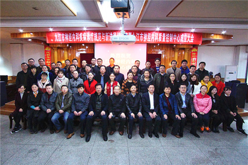 九江市神经内科质量控制中心挂靠临床医学院/附属医院神经内科,市卫计委医政医管与药政科朱衣文科长向聂红兵主任授牌,并对中心成立及新当选的挂靠单位、主任及委员们表示祝贺。他表示,九江市神经内科质控中心的成立,非常有意义,不仅是医改的的需要,也是是医疗行业推广的需要,希望中心能加强建设,履行职责,明确质量管理及行政监测,把中心建立成学习、交流、发展的平台,进一步提升诊疗水平。