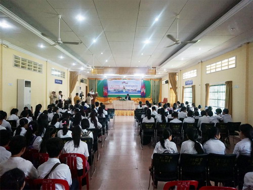 11月24日上午,由柬埔寨王家研究院孔子学院主办的“海上丝绸之路——西哈努克省经济特区与深圳经济特区论坛”活动在柬埔寨西哈努克省政府顺利举行。柬埔寨西哈努克省政府副省长陈森欧(Chen Seng Ngoun)阁下及西哈努克省政府相关部门官员,柬埔寨王家研究院孔子学院院长谢莫尼勒(H.E.CHEA Munyrith)阁下、中方院长夏修龙教授、西哈努克省经济特区代表宋文杰先生、西哈努克港经济特区有限公司办公室主任李超先生、西哈努克省港华学校校长李红霞女士、西哈努克省高级中学校长吴高提先生和西港高中师生共计280人参加了本次活动。