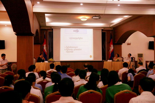 夏院长的报告受到与会者的欢迎, 他就“目前孔子学院面临哪些问题?”、“中柬两国人民之间有哪些值得互相学习的地方”、“为什么叫‘孔子学院’而不是‘老子学院’”等听众提出的问题谈了自己的看法。夏修龙院长说,孔子学院的目的是应世界各国人民汉语学习的需要,开展汉语教学和文化交流工作。两国之间的友好在于民心相通,需要彼此交流和沟通,以加深了解,长久友好,这正是孔子学院的使命,孔子学院在中柬友好中起到桥梁和纽带作用。夏修龙院长的发言赢得会场的阵阵掌声。