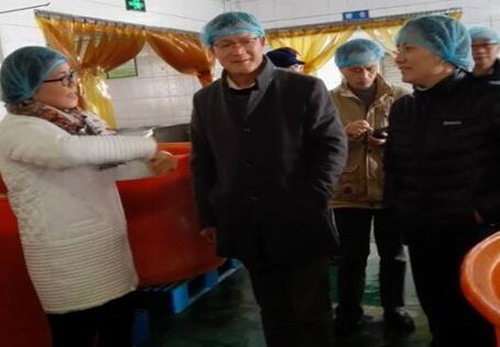 考察中,杨益云先生首先介绍了该企业生产的产品特点及产业理念,并在技术上希望药学与生命科学学院能给予帮助。药生学院严姣姣书记在会上说到服务社会是高校四大职能之一,也是我们的责任,我们学院科技能力较强,产品质量的检测我们完全可以完成。主管全院工作的鲍海鸥副院长从企业发展的前景和运作上给该企业提出建议,认为全国做姜食品的产业很多,希望姜御堂能抢占先机,把握发展机遇,姜御堂是我们本地企业,药学与生命科学学院定当合作与支持。