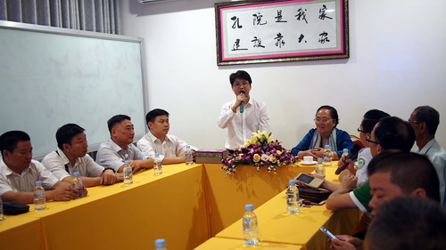 宴会开始前,克罗媞达理事长与江西商会代表进行了座谈,她说,孔子学院成立以来发展很快,规模不断扩大,形成了自己的特色,成为柬埔寨知名的品牌,孔子学院的发展离不开社会各界的支持。7年来,江西商会给予孔子学院极大的支持和帮助,正是由于社会各界的支持孔子学院才有所成就。
