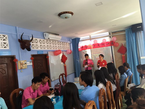 汉语教师志愿者刘欢老师首先以讲座的形式为大家介绍了中国春节文化,接着,“现场拜年”、“发红包”、“有奖问答”及“中华民族服装秀”等活动丰富多彩,让大家在欢快祥和的气氛中加深了对中国文化的了解。