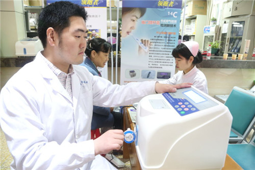 为了宣传“国际护胃日”,更好的服务广大群众,4月10日,临床医学院/附属医院消化内科在门诊一楼大厅举行了以“提倡爱护和保护胃黏膜”为主题的大型科普宣传咨询活动,同时为广大病患提供免费的幽门螺旋杆菌检测。
