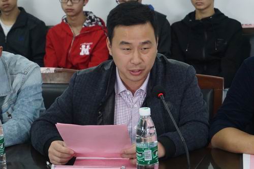 刘新强书记首先对善水科技吴总的到来表示欢迎,他说,学院高度重视创新创业教育,积极鼓励同学们参加创新创业活动。去年学院组织的“得一云购杯”互联网+创新创业大赛,在同学们当中取得了热烈的反响,也取得了不错的成绩,今年,“善水科技杯” 互联网+创新创业大赛即将开赛,希望大家积极构思、认真调研,严谨缜密的撰写方案,争取拿出高质量的作品。他感谢善水科技对本次大赛的支持,预祝本次大赛取得圆满成功。