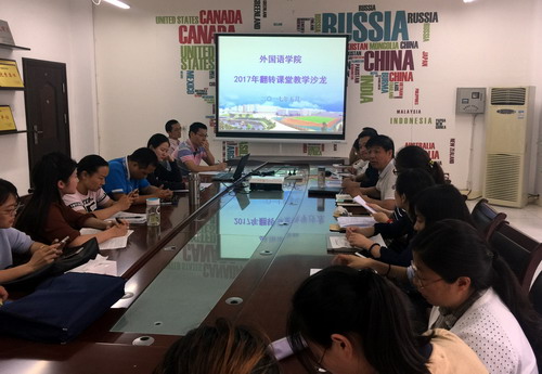 柴克清副院长首先对学院“翻转课堂”教学改革给予了充分的肯定和赞扬,指出外国语学院“翻转课堂”教学模式的改革尝试已进入成果期,目前已拥有大量的实践成果,一系列理论成果也已初步形成,正在积极申报各类相关课题;接着,与会教师各抒己见,畅谈自己在翻转课堂教学改革方面所取得成就及面临的问题和困难,提出了很多有价值的应对办法。研讨会气氛热烈。