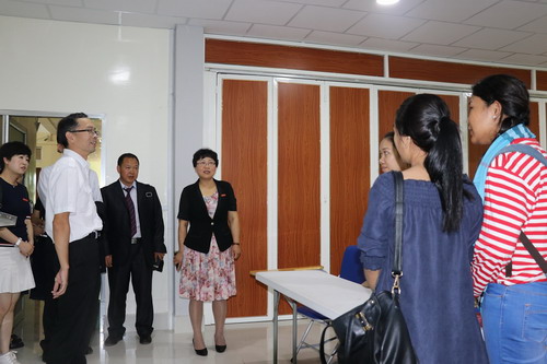 会谈后,在夏修龙院长的陪同下,李雪峰书记一行参观了孔子学院的茶文化中心和教学设施,李雪峰书记亲切地和孔子学院的学生进行交流,夸赞学生们的汉语说得不错。柬埔寨孔子学院良好的教学环境和学习氛围,给客人留下深刻印象。(黄书)
