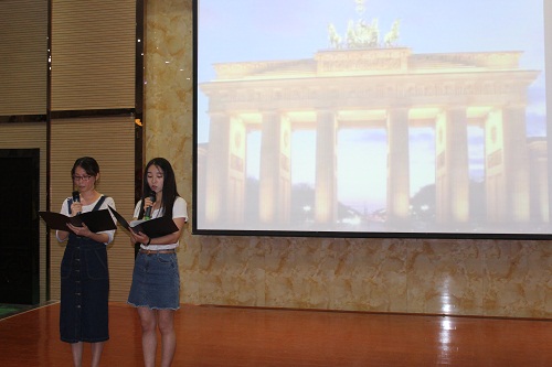 比赛现场,参赛选手们以其铿锵有力的气势,充沛饱满的感情,自信大方的形象赢得了评委老师和同学们的阵阵掌声。比赛内容和形式更是异彩纷呈,法语朗诵温情浪漫、德语朗诵铿锵有力、而韩语朗诵则是软糯清新。比赛间还穿插了异国文化介绍、韩服走秀等各个形式的暖场节目。最后,根据在场评委公平公正的评分,法、徳、韩文朗诵分别评出一等奖一名,二等奖两名,三等奖三名。