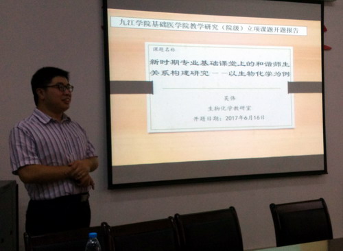同时,2017年基础医学院立项的3项课题《人体解剖学实验教学平台建设和运用》、《基于BYOD的混合式移动教学在基础医学课程中应用及其效果评价研究》、《新时期专业基础课堂上的和谐师生关系构建研究----以生物化学为例》的负责人也分别进行了开题,会议中,大家还就教学改革的研究热点展开了热烈的讨论和交流。