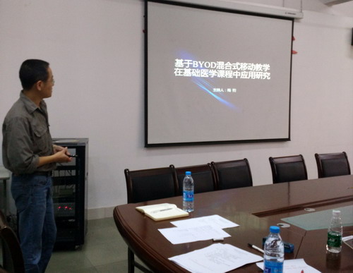 6月16日上午,基础医学院在浔东校区华文楼105实验室举行2017年校级教改课题《蓝墨云班课在临床医学本科组织胚胎学教学中的应用研究》开题报告会。会议邀请了专家评委6人,基础医学院郑美蓉教授担任专家组组长,专家组成员包括何巍、周许峰、梅钧、吴建芳、范文燕老师,课题组成员参加了开题报告,会议由教研科牛力副科长主持。