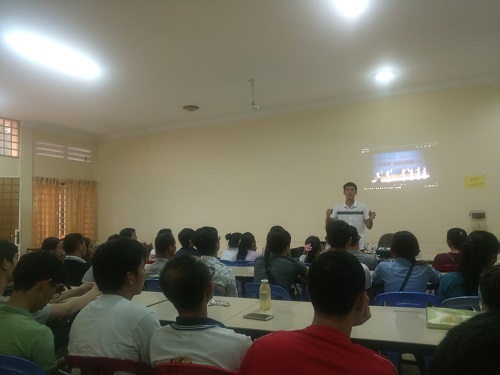 为了激发学生的学习积极性,使学生进一步了解现代中国,7月3日下午,柬埔寨王家研究院孔子学院西哈努克省高级中学汉语中心在西哈努克省高级中学汉语中心举办留学中国经验交流会。此次活动由从中国九江学院留学归来的裴永平(Phephat Pheng)同学主讲,汉语中心负责人李智老师、西哈努克省教育厅林江老师(Lim Kheang)及汉语中心师生共50余人参加。