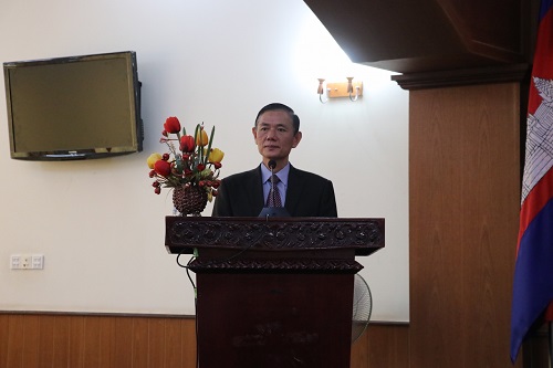 夏修龙院长在致辞中感谢柬埔寨国家语言委员会为孔子学院汉语教师开设柬埔寨语言文化培训班,他说,国之交在于民相通,中柬两国民众之间的交流是中柬友谊的基础。汉语教师作为文化的使者,一方面教授汉语,同时也学习柬埔寨语言和文化,加深彼此的交流和沟通。他希望大家在今后继续关注柬埔寨,关注柬埔寨孔子学院,为中柬友谊作出贡献。