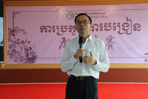 在教学竞赛活动中,夏修龙院长发表了讲话,他说,前两天孔院总部在金边举行了汉语教师志愿者岗中培训,今天我们在此举行汉语竞赛,其目的是强化质量意识,不断提高教师的教学技能,提升教学质量。孔子学院的发展已从外延式发展转移到内涵建设,柬埔寨孔子学院今后将从如何做强上下功夫,把内涵建设落到实处。夏修龙院长还再次强调了安全工作,希望大家平安、顺利。