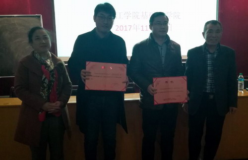 学术报告前,汪鑫副院长对孙博士到基础医学院讲学表示欢迎,并对孙博士在学术上的成就进行简单介绍;学术报告后,举行了九江学院基础医学院聘请武汉大学李得加教授和孙承操副教授为我院兼职教师的受聘仪式。
