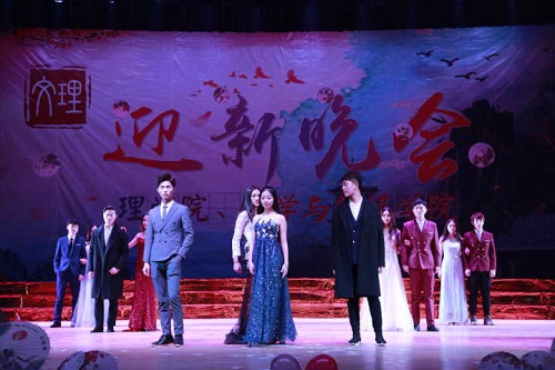 晚会在文传学院和理学院学生联袂演出的洋溢着青春活力的开场舞“文·理的交融与碰撞”中拉开了帷幕。接着,歌舞、相声、朗诵、走秀、乐器演奏等精彩的节目给观众呈现了丰盛的视听盛宴。一支性感而火热的歌舞《十字街头》带我们穿越回民国时代,一场幽默风趣的相声《满腹经纶》引得我们时而欢笑时而沉默,一篇深情的朗诵《唐诗里的中国》更是把我们的思绪引向了唐风烟雨朦胧之中。随后,一曲《平凡的fade》将观众带入了高潮,游鸽乐队的《把夜晚染黑》的出色表演亦是精彩绝伦,文理迎新的走秀虽不能与国际秀相媲美,却也令人激情澎湃。此外,一个特别的助导节目,带领新生们重温军训期间与助教们共同经历过的酸与甜,回忆曾经青涩时光。