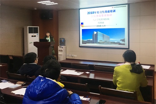本次培训还邀请了社会科柯益民科长,质控科李丽科长,院感科周燕丽科长分别就相关知识进行授课。柯益民科长为大家生动讲解了医患沟通的基本技巧及医疗纠纷和风险防范的相关知识。李丽科长详细地为同学们讲解了病历书写的重要性、书写的基本规范和原则等知识。周燕丽科长重点讲述了医院感染管理概况、医院感染控制、医疗废物管理、职业暴露等内容,生动形象的比喻,给学生们留下了深刻的印象。最后,实习生管理干事任清风老师就实习要求、劳动纪律等细则作了说明。
