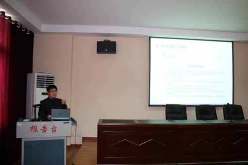 机材学院王英惠副院长向大家通报了2017年度机材学院科研工作总体情况,并指出学院科研工作存在的主要问题,最后对2018年度国家自然科学基金的申报工作进行了安排。