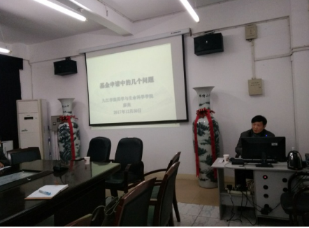 1月19日,化环学院举行了2018年国家自然科学基金申报落实会,会议特别邀请了我校二级教授廖亮作了一场关于国家自然科学基金申报的辅导报告。化环学院严平院长、曹小华副院长等化环学院、鄱阳湖生态研究中心20余位博士教授参加了会议,会议由江西省生态化工工程技术研究中心副主任彭游教授主持。