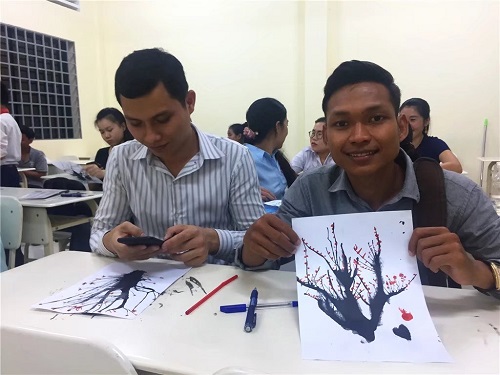 吴哥高中孔子课堂举办“吹墨梅花”的春节庆祝活动