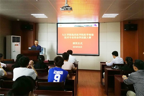 胡志坚副院长对本次比赛进行了点评。他强调医学检验技术专业是一门实践性很强的学科,要求同学们重视检验基本技能的学习与训练,在医学检验技术快速发展的今天,虽然自动化程度越来越高,但形态学仍是无可替代的重要技能,希望同学们重视检验形态学工作,具备检验形态学基本技术能力。并要求形态教学老师对此次比赛学生的成绩做具体分析,重点加强对学生薄弱环节的教学。