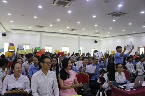 5月30日,由中国驻柬埔寨大使馆和孔子学院总部主办、柬埔寨皇家科学院孔子学院承办、柬埔寨福建总商会协办的第十七届“汉语桥”世界大学生中文比赛柬埔寨赛区决赛在金边亚欧大学金色大楼会议室成功举办。亚欧大学副校长孙色塔(Mr. SUN Setha)、柬埔寨皇家科学院孔子学院中方院长夏修龙、柬方院长苏碧娜(VUTH Sopheakna)及协办单位代表冯自权莅临现场,孔子学院和相关高校师生及社会人士等400余人参加了活动。