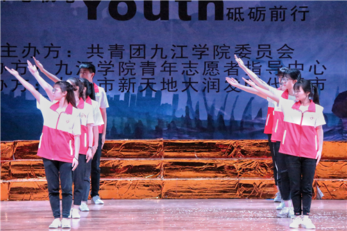 九江市青年志愿者协会会长、校团委书记闫来英在晚会上致辞。他指出:“我们举办今天的晚会,其目的就是要动员和凝聚更多的青年来服务社会、奉献爱心、传承文明。青年志愿者活动,是一项崇高的公益事业,也是大学生建功新时代、勇担新使命的重要平台。希望同学们不忘初心、牢记使命,坚持与祖国同行、为人民奉献,感召更多青年学生和社会公众加入志愿者服务行列”。