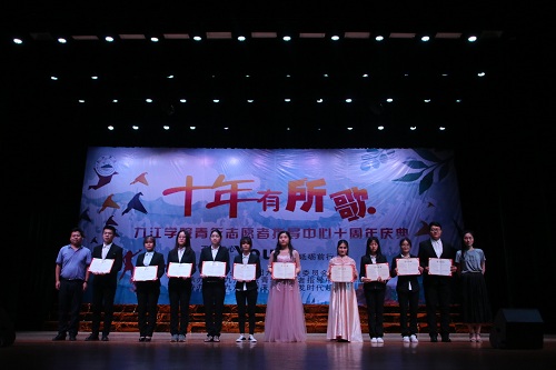 据悉,10年来,九江学院每年共新增注册志愿者3000余人,在校注册青年志愿者达10000余人。每年共开展各类志愿服务活动1000余次,累计出动人数近16000余人次,累计志愿服务时长33000余小时,多个服务队志愿者服务项目取得省市级优秀项目奖,多名志愿者被评选为省市级优秀志愿者。青年志愿者团队本着“立足校园,服务社会”的原则,大力开展扶贫帮困、关爱特殊儿童、无偿献血、微爱留守、环境保护、交通协管、卫生健康、大型节会保障工作等领域的志愿服务工作,开创了青年志愿者工作的新局面,为促进我校精神文明发展建设作出了贡献。
