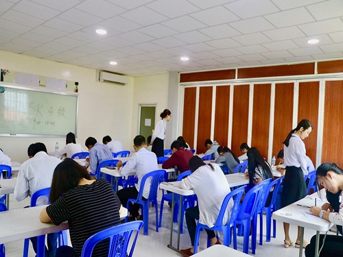 当天,柬埔寨皇家科学院孔子学院为参加本次考试的全体考生营造了一个公平、公正、舒适的考试环境,各项考试流程分工明确,各主考教师和监考教师严格按照考试流程进行考试,考场秩序良好。柬埔寨皇家科学院孔子学院中方院长夏修龙教授进行了巡考,了解考场动态,以保证考试的顺利进行。