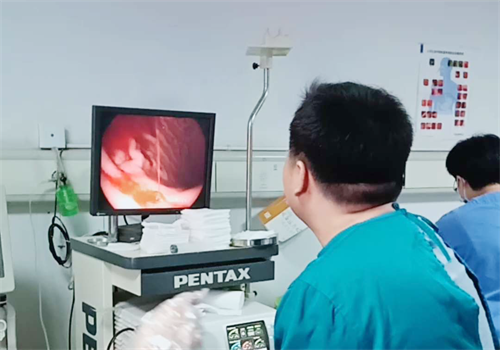 此次患者是一名47岁男性,因“呕血、解黑便5小时”由临床医学院/附属医院急诊科转入消化内科,随后30分钟内再次呕吐大量鲜血,总量超过1000ml。消化内科团队在内镜中心行内镜下探查,发现患者胃体溃疡出血(Forrest Ia)合并贲门粘膜撕裂。针对患者胃体溃疡出血,蔡长春主任首度应用其自创的内镜下NTAN术成功止血;另一处贲门粘膜撕裂出血采用钛夹夹闭成功止血,术后患者安全返回病房,手术效果良好。