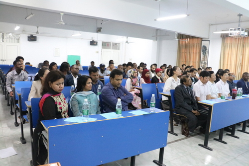 会议由国际交流学院学生科副科长黄安平主持,国际交流学院副院长何广致辞,他对2013级医学留学生顺利完成五年医学理论学习表示祝贺,感谢附医学部、附属医院、基础医学院等相关部门对留学生在我校学习的支持和帮助,希望2013级留学生回国后能够利用自己在九江学院学到的医学知识为自己国家的医疗事业做出贡献。