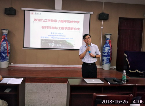 为进一步提高同学们的考研热情,6月25日下午,常州大学材料科学与工程学院朱卫国院长、王标兵教授等一行人来到化环学院进行考研宣讲。宣讲会在向学楼201召开,来自化环学院、机材学院相关专业学生120余名同学参加了宣讲会。宣讲会由化环学院副院长曹小华教授主持。