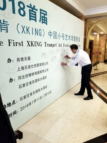 7月11日,2018首届肖肯(XKING)中国小号艺术周暨展演于石家庄成功举行。本次活动由中央音乐学院等七所专业院校小号教授联合牵头主办,是具有国际交流意义的小号艺术盛事。我校艺术学院韩韬老师带领小号专业学生陈润泽、王秀两位同学参加了本次小号艺术周活动,韩韬老师被本次活动聘请为专家评委。