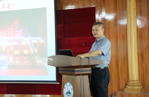 副院长黄啸林从九江及九江学院概况、临床医学院/附属医院概况及历史沿革、医院管理、医疗服务、医院教学工作、学科建设发展和员工生活等方面生动详细地为大家进行了介绍,他结合近期工作情况就医院发展予以阐述,并对新入职员工提出了殷切希望。