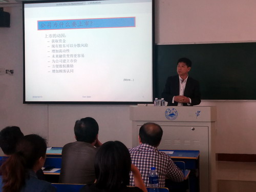 讲座中,孙教授首先对上市公司上市动因、上市成本、IPO抑价做全面的理论讲解与分析。然后用详实的数据向参加讲座师生分享自己的学术研究成果《股票首发会影响市场价格吗?来自中国的实证检验》。重点分析IPO上市日之后,股票发行价格为什么会有明显的价格反转;发行日之前以及上市日的买方指令与卖方指令之差会低于平常交易日,但是上市日之后要高于平常交易日;研究解释为了揭示股票市场和信贷市场的互动关系,为什么需要着重深入研究IPO股票认购等问题。