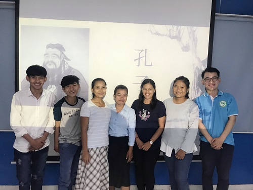 10月19日下午,为庆祝第五个全球“孔子学院日”,柬埔寨皇家科学院孔子学院茶胶青年联合会汉语中心举办了“孔子学院日”系列活动之孔子生平文化讲座。此次讲座分为介绍孔子生平和了解孔子思想两部分,由柬埔寨皇家科学院孔子学院茶胶青年联合会汉语中心汉语教师志愿者王鹏策划组织,茶胶联合会汉语中心部分学生参与。