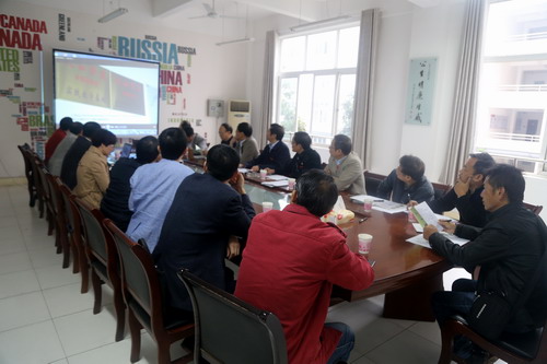 在香远楼219会议室,检查组经讨论统一了评分标准,确定了“各评委无计名评分,最高分不超过95分,最低分不超过75分,统分时去掉一个最高分和一个最低分后取平均值”的评分规则。接着各受检学院负责人从学院文化展示、学院环境美化、学院宣传则(片)、其他特色亮点等对本科教学工作审核评估文化建设工作及整改情况作了PPT和宣传片汇报。